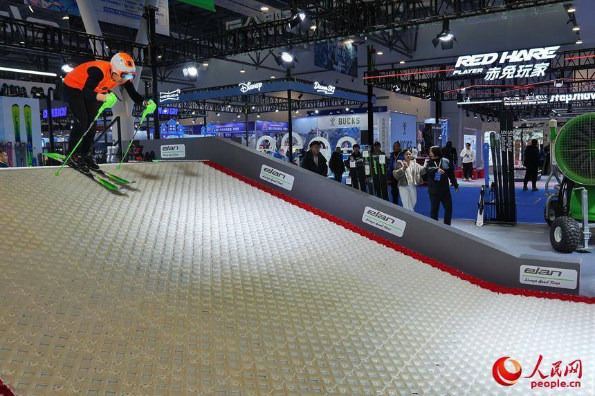 滑雪爱好者在雪博会上体验滑旱雪。人民网记者 李洋摄